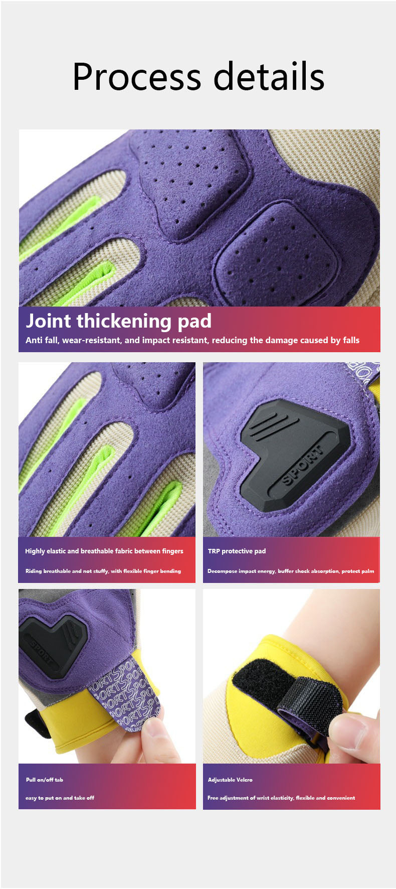 For those of you who love freedom, the blue sky, white clouds, gentle breeze, and wilderness are the most beautiful places. Here, you can find the essence of humanity, listen to the sounds of nature, and blend in with the world. However, you may face some small dangers such as spikes, gravel, tree branches, or even the earth beneath your feet. In this case, this outdoor anti slip glove can help you solve some of the problems. The unique three-dimensional anti slip design protects your hands, and the anti slip silicone texture on the palm increases your grip strength. The adjustable elastic Velcro wristband is better suited to your hand shape. Finally, this glove adopts a more vibrant macaron tone, which blends better into the colorful natural environment. This way, when enjoying the joy of sports, Don't worry about your hand safety, embrace happiness wholeheartedly!